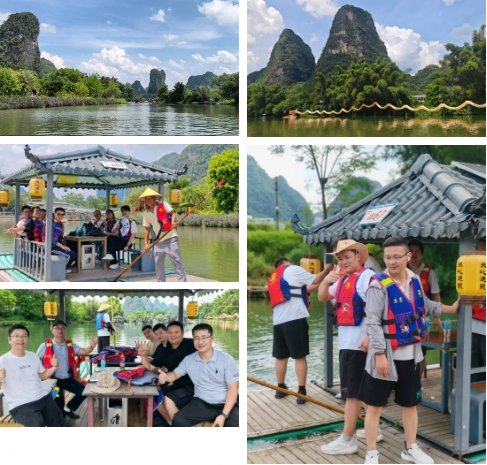 團建首日,我們乘船悠然啟航于漓江之上。碧波蕩漾,峰巒疊翠,每一處都是絕美的水墨畫卷,讓人不禁感嘆大自然的神奇與美妙,大家紛紛拿出相機,用鏡頭定格美好的瞬間,將這份大自然的饋贈珍藏。