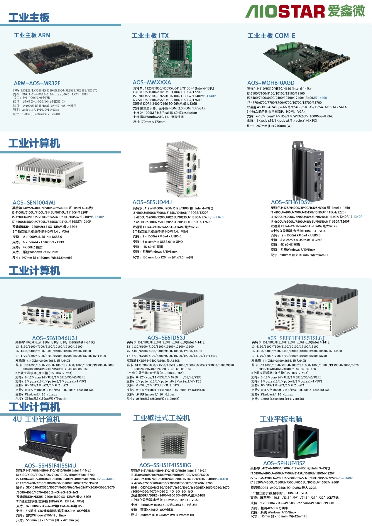 愛鑫微電子作為國(guó)內(nèi)工業(yè)產(chǎn)品及工控機(jī)領(lǐng)域產(chǎn)品線最全的研發(fā)、生產(chǎn)、銷售為一體的廠家,同時(shí)提供OEM/ODM定制服務(wù),目前主產(chǎn)品線為: