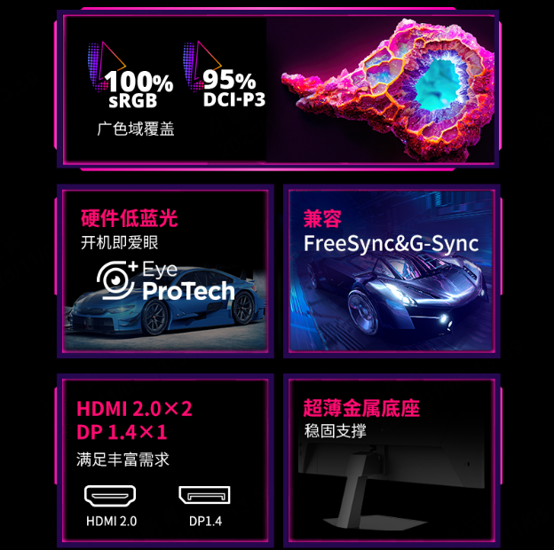 色彩方面,VX25G26-2K-2覆蓋100% sRGB與95% DCI-P3廣色域,確保色彩還原準確,畫面表現力更強。無論是游戲娛樂還是直播內容制作,都能呈現生動、真實的畫面效果,為玩家帶來沉浸感體驗。